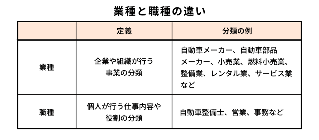 自動車整備士の転職を成功させるには、業種(会社の事業内容) と 職種(担当する業務) の違いを正しく理解することが大切です。