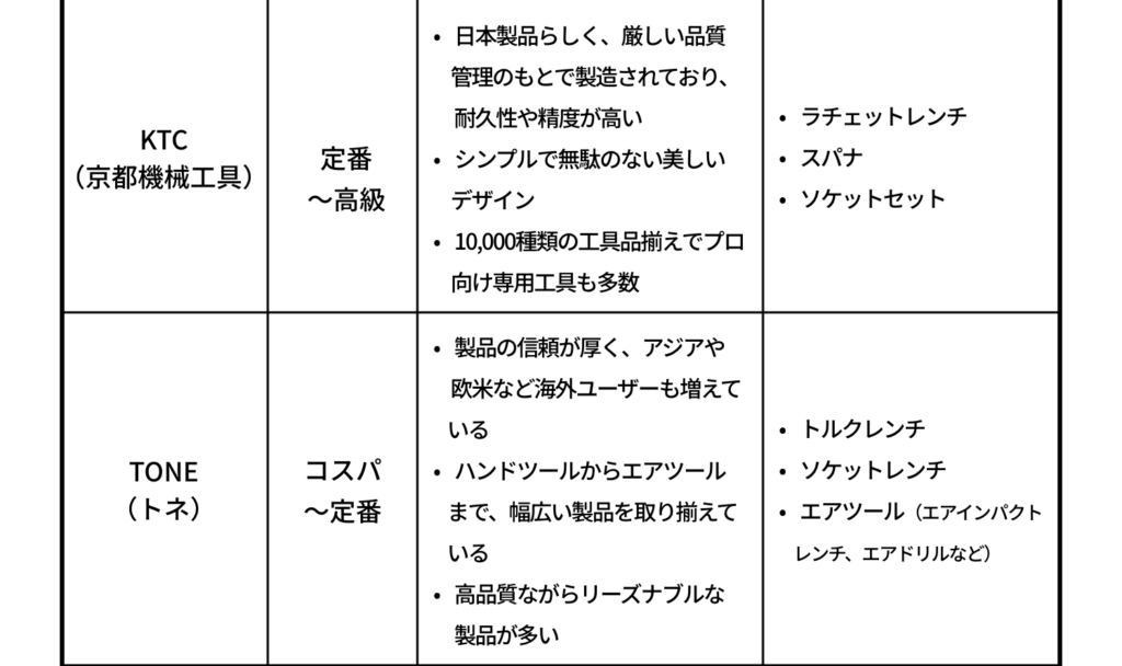 コストパフォーマンス重視なら「TONE(トネ)」 や 「スーパーツール」が人気で、価格を抑えつつ信頼性のある製品を選べます。